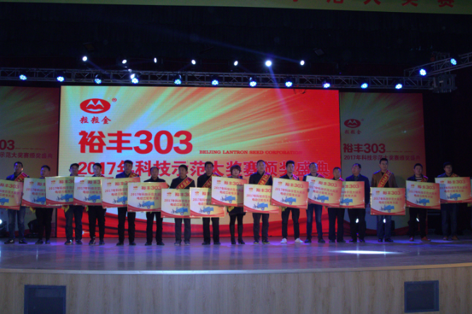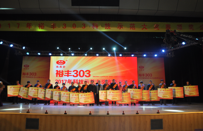 2017年11月16日,由北京聯(lián)創(chuàng)種業(yè)股份有限公司舉辦的2017年裕豐303科技示范大獎賽頒獎盛典在安徽蕭縣會議中心隆重舉行。安徽省蕭縣人民政府副縣長李建明、蕭縣農(nóng)委、農(nóng)技推廣中心、蕭縣人民廣播電臺、北京聯(lián)創(chuàng)種業(yè)公司總裁彭澤斌、副總裁史澤琪、粒粒金事業(yè)部總經(jīng)理王青才等有關(guān)領(lǐng)導(dǎo)以及來自河南新農(nóng)村頻道、山東農(nóng)科頻道、河北電視臺、農(nóng)民日報、河北農(nóng)民報、河南科技報、江蘇科技報、安徽種業(yè)、農(nóng)財寶典等有關(guān)媒體朋友參加了本次頒獎盛典;來自北京、天津、河南、山東、河北、安徽、江蘇七省市廣大農(nóng)技推廣商及周邊種植農(nóng)戶2000多人也參加了此次頒獎盛典。北京聯(lián)創(chuàng)種業(yè)總裁彭澤斌現(xiàn)場宣讀了《北京聯(lián)創(chuàng)種業(yè)關(guān)于對2017年裕豐303科技示范戶表彰的決定》,副總裁史澤琪作《北京聯(lián)創(chuàng)種業(yè)關(guān)于2017年裕豐303科技示范工作實施的報告》,內(nèi)容精彩繪呈,引起與會者陣陣熱烈掌聲。